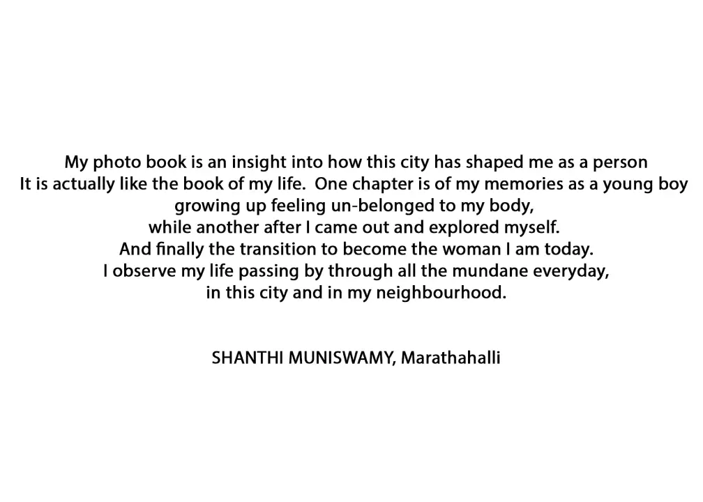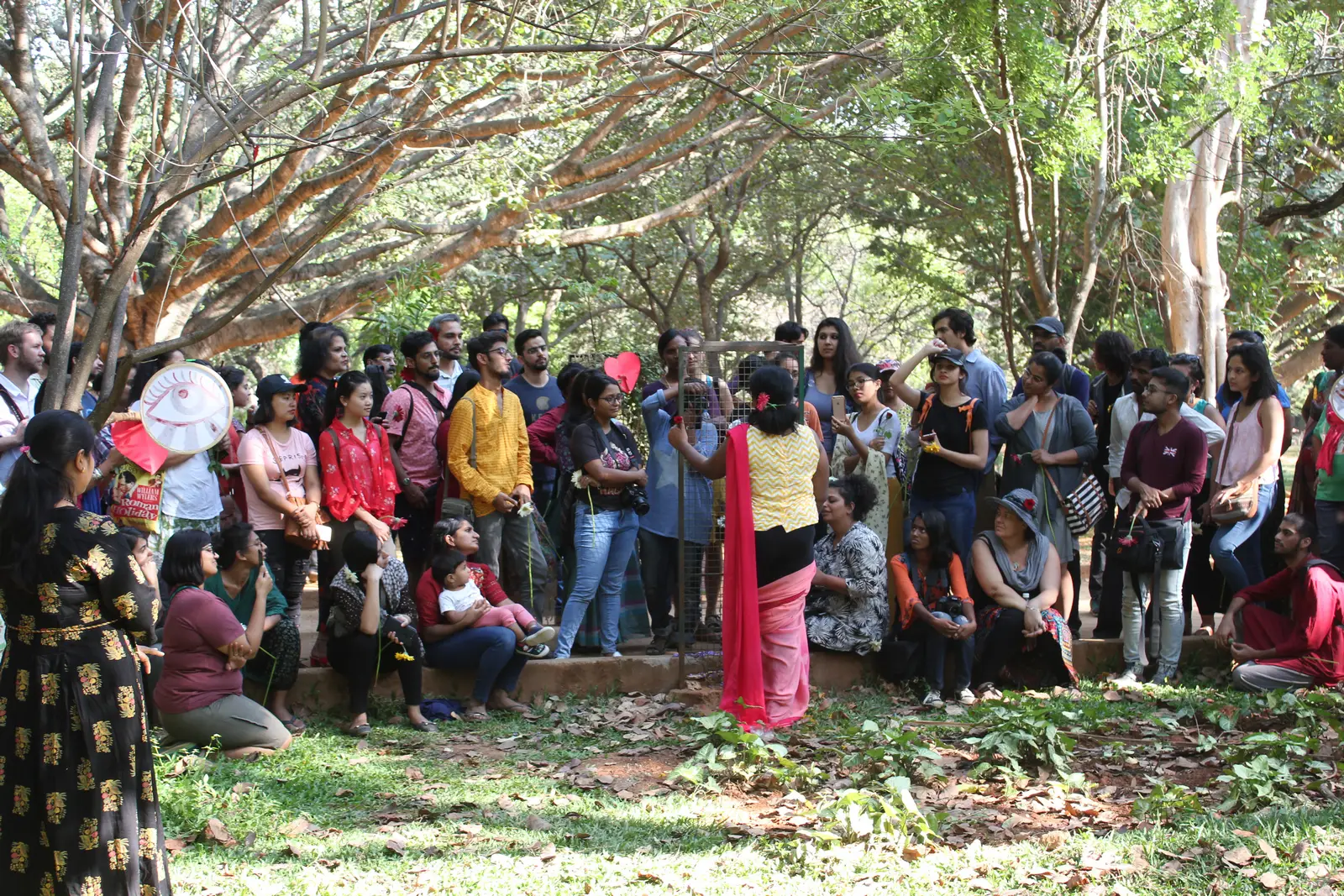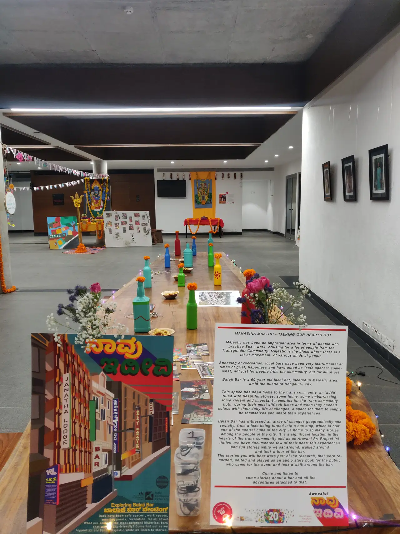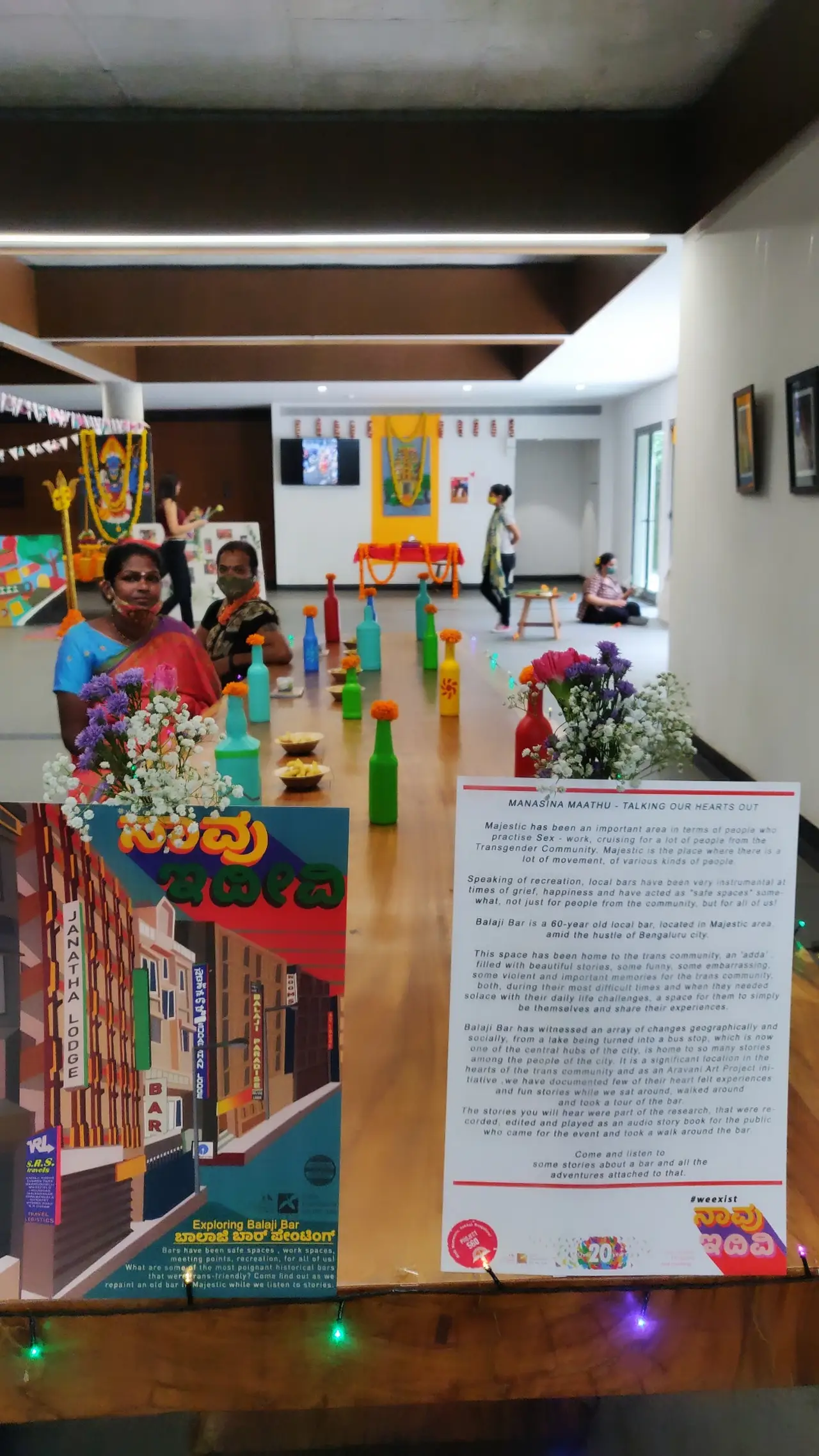 This documentation is a glimpse of the 9 events that took place in Bangalore, exploring spaces and stories that belong to the people from the Transgender community. Each project was only possible because of the generosity and the knowledge that was shared by Shanthi, Chandri, Purushi, Jyothi, Priyanka, Mayil, Booby, Kumari, Shwetha, Prarthana, Veena, Sandhiya, Thara, (Late) Parichaya, Aishwarya, Nakshatra, Sana Suman, Harish, and so many more from the community.